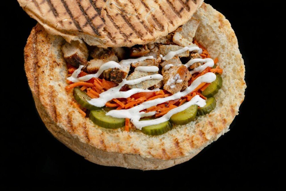 Свежая хрустящая булочка, внутри которой идеальное сочетание сочного мяса, корейской моркови и маринованных огурцов под соусами барбекю и фирменным