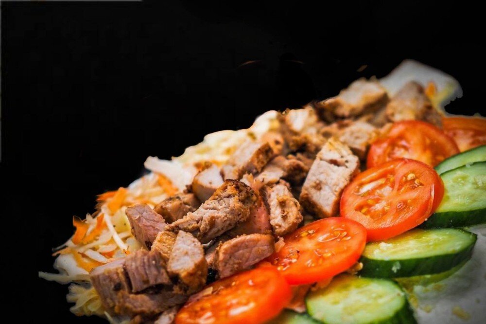 Салат из капусты и моркови, а так же нарезка из свежих огурцов и томатов отлично дополняют яркий вкус мяса. Благодаря фирменному соусу шаверма становится сочной и приобретает более яркий и насыщенный вкус.
